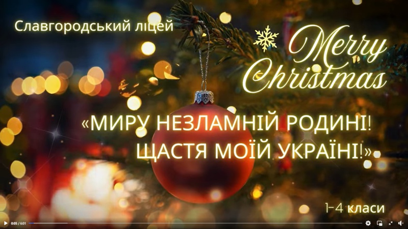 Різдво – це час дива, час, коли серця наповнюються вірою та надією. Нехай у вашому домі панує затишок, а в душі – гармонія та надія на мирний прийдешній рік. Нехай ці дні будуть сповнені теплом, любов'ю та злагодою. Учні 1-4 класів Славгородського ліцею підготували вітання «МИРУ НЕЗЛАМНІЙ РОДИНІ! ЩАСТЯ МОЇЙ УКРАЇНІ!» (відео)