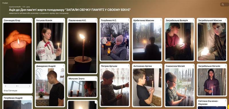 Вже третій рік поспіль, незважаючи на відстані та обставини, ми об'єднуємося у віртуальному просторі. На спеціальній інтерактивній дошці Padlet учні, батьки та вчителі створили справжній меморіал світла. Кожне завантажене фото — це не просто зображення свічки на підвіконні. Це символ нашої незламності, нашої пам'яті та нашої віри в майбутнє.