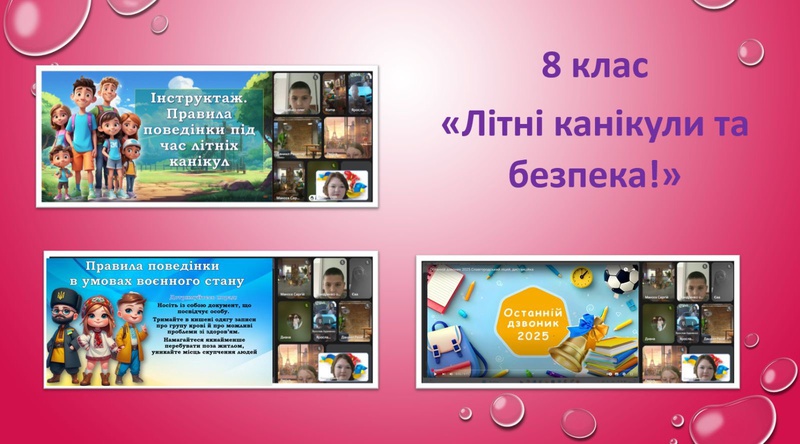 Ось і добігає кінця ще один насичений навчальний рік. Напередодні довгоочікуваних літніх канікул класні керівники традиційно провели виховні заходи та приділили особливу увагу питанням безпеки життєдіяльності учнів на літніх канікулах. Бажаємо всім гарного відпочинку, яскравих вражень та мирного неба!